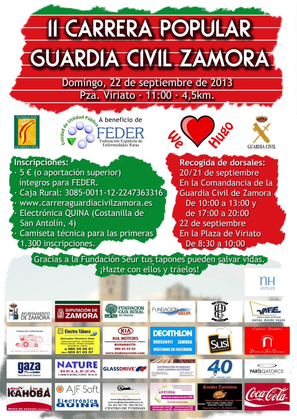 La II Carrera Popular Guardia Civil de Zamora es una carrera organizada a beneficio de FEDER (Federación Española de Enfermedades Raras). Tendrá lugar el domingo 22 de septiembre de 2013 a partir de las 11:00 horas.