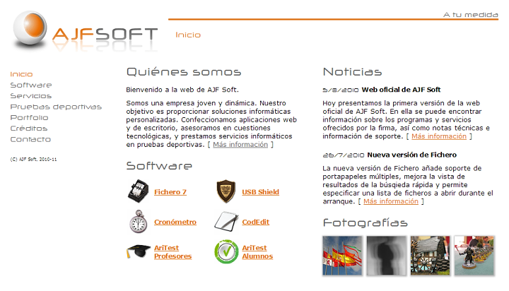 Web corporativa de AJF Software. Basada en el logotipo diseñado por Alberto Pérez, y concebida para dar a conocer el abanico de servicios que ofrece AJF Soft. Presenta un diseño limpio y diáfano, y una estructura del sitio pensada para encontrar rápidamente la información buscada, y para crecer con el tiempo. Está basada en el sistema gestor de contenidos AJF Content Management System, al que debe su facilidad de navegación y mantenimiento.