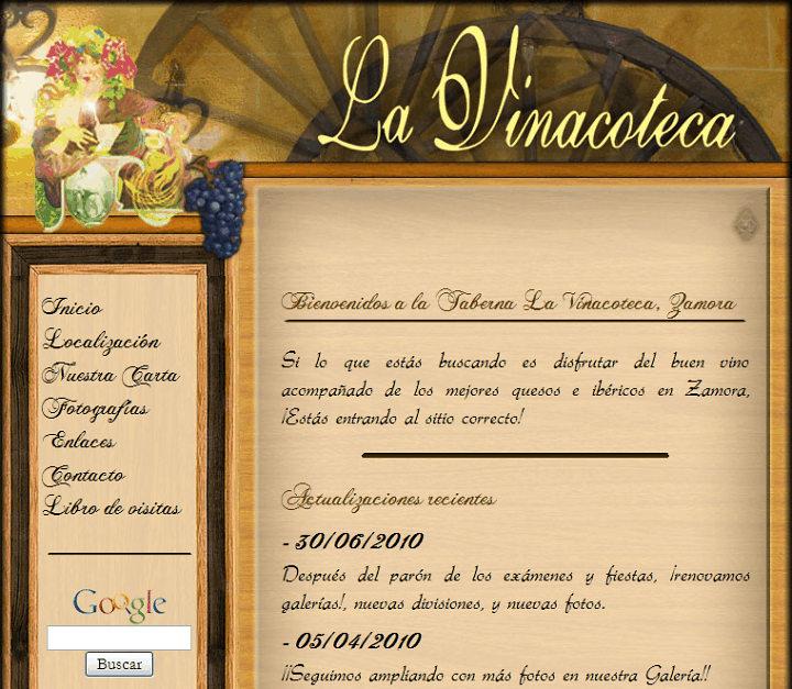 Web de la taberna zamorana La Vinacoteca, conocida por la calidad de sus vinos, quesos e ibéricos, y por la amabilidad de su clientela. Como carta de presentación del establecimiento, intentamos reflejar estas virtudes a través de un diseño rústico, y de la inclusión de una galería fotográfica y un libro de visitas para homenajear a los parroquianos habituales.
